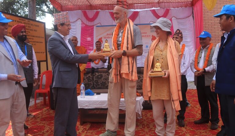 नेपाल प्रवेशद्वारसँगै टासिएर निर्माण भएको एउटा सानो टेन्टमा जब पर्यटन व्यवसायी मन्जु गिरीले बोल्न थालिन् तब यत्रतत्र छरिएकाहरु त्यहाँ राखिएका कुर्चिमा बस्न थाले । केहिबेरमै लुम्बिनी प्रदेश सरकारका प्रमुख सचिव बाबुराम अधिकारी र नेपाल एशोसियन अफ ट्राभल्स एन्ड टुर एजेन्ट (नाट्टा) लुम्बिनीका अध्यक्ष चन्द्र बहादुर थापाले चार जना विदेशी पर्यटकलाई खादा, माला र बुद्ध अङ्कित मायाको चिनो दिएर सम्मान गरेपछि माहौलमा झनै रौनकता सृजना भयो ।