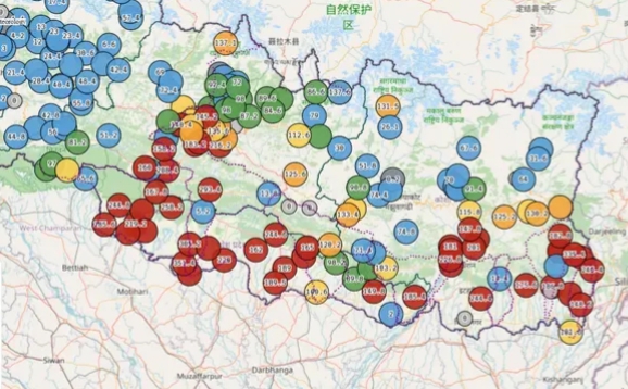 गौरमा ३३४, गरूडामा ३०४.६ पर्साको मुडलीमा २९०.८, वीरगञ्जमा २८८, बाराको सिमरा विमानस्थलमा २२५.४, परवानीपुरमा २२१.६, निजगढमा २६१.४, सिन्धुलीको हरिहरपुरगढीमा २९५, मकवानपुरगढीमा २१०, पनौतीको खोपासीमा २१५.२, गोदावरी ललितपुरमा १७८.८, लेलेमा १८४.२, काठमाडौंको नैकापमा १४१.६, सुन्दरीजलमा १४४.६, सर्लाहीको मनुस्मारामा २३३.६, मलंगवामा २२९, जनकपुरमा १८९.९ मिलिमिटर वर्षा भएको छ।