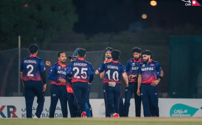 कप्तान रोहित पौडेल १६ रन बनाउँदा क्याच आउट हुन पुगे। सन्दीप जोराले ५ र कुशल मल्ल ४ रन बनाउँदै आउट भए।