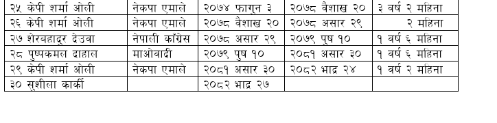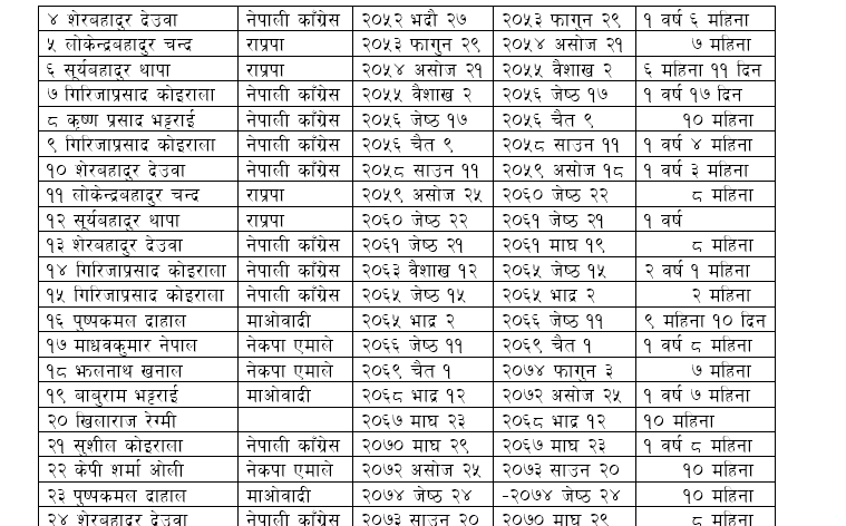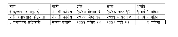 २०४७ देखि हालसम्मका प्रधानमन्त्रीको सूची