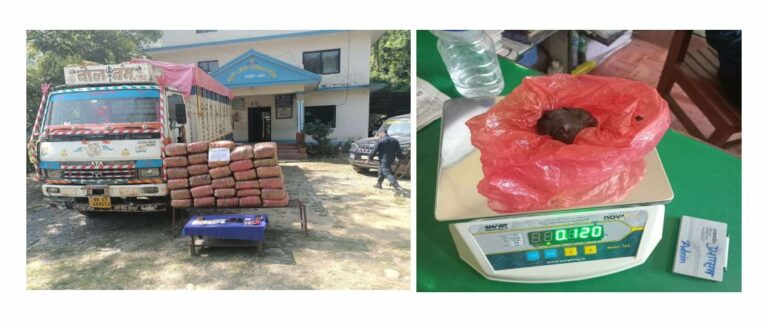 धादिङमा प्रहरीले भारतबाट ल्याइँदै गरेको २१९.२१ केजी गाँजा र करिब १२० ग्राम अफिमजस्तो देखिने कालो पदार्थसहित दुई जनालाई नियन्त्रणमा लिएको छ।
