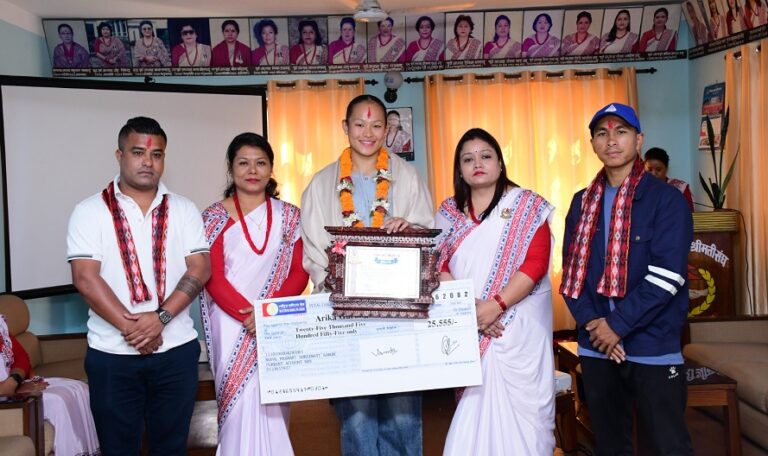 नेपाल प्रहरी श्रीमती संघले अन्तर्राष्ट्रिय कराते प्रतियोगितामा एकपछि अर्को ऐतिहासिक सफलता दिलाएकी एरिका गुरुङलाई नगदसहित सम्मान गरेको छ।