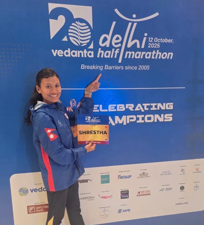 नेपालकी ‘गोल्डेन गर्ल’ तथा ओलम्पियन धाविका सन्तोषी श्रेष्ठले दिल्ली हाफ म्याराथनमा नयाँ राष्ट्रिय कीर्तिमान कायम गरेकी छन् । विश्वका उत्कृष्ट खेलाडीहरुको सहभागिता रहेको उक्त प्रतिष्ठित म्याराथनमा उनले १ घण्टा १५ मिनेट ४ सेकेण्ड समयमा दौड पूरा गरेकी हुन् ।