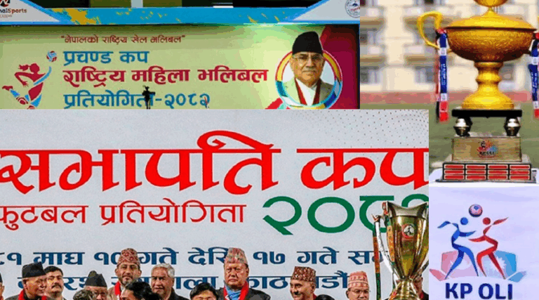 यी प्रतियोगिताहरू प्रायः सम्बन्धित खेल संघहरूबाट मान्यता नपाएको हकमा समेत गरिन्छ । जसको परिणामस्वरूप प्रतियोगितामा सहभागी क्लब वा खेलाडीहरूलाई दीर्घकालीन अवसर मिल्दैन । खेलाडीहरूको विकास र भविष्य निर्माणमा कुनै सुनिश्चिता रहँदैन । यो प्रवृत्ति अहिले वडा, पालिका र प्रदेश तहसम्म फैलिसकेको छ । उदाहरणका लागि, सुदूरपश्चिम प्रदेश सरकारले मात्र मुख्यमन्त्री कप भलिबलका लागि लाखौं रुपैयाँ छुट्याएको छ । खेलकुदको नाममा नेताको प्रचार र चाकडीका लागि वडा कप, मेयर कप, पालिका कप जस्ता प्रतियोगिताहरूको स्वरूप पनि उस्तै छ । वास्तवमा खेलकुदको मूल उद्देश्य भनेको प्रतिभा पहिचान, राष्ट्रिय गौरवको प्रवद्र्धन र खेलाडीको भविष्य निर्माण हो । जसका लागि खेलसँग सम्बन्धित कुनै चर्चित खेलाडी, खेल क्षेत्रमा योगदानकर्ता वा राष्ट्रिय विभूतिको नाममा प्रतियोगिता आयोजना गर्नु राज्यको दायित्व पनि हो, न कि कुनै पार्टीसँग सम्बन्धित नेताको ।