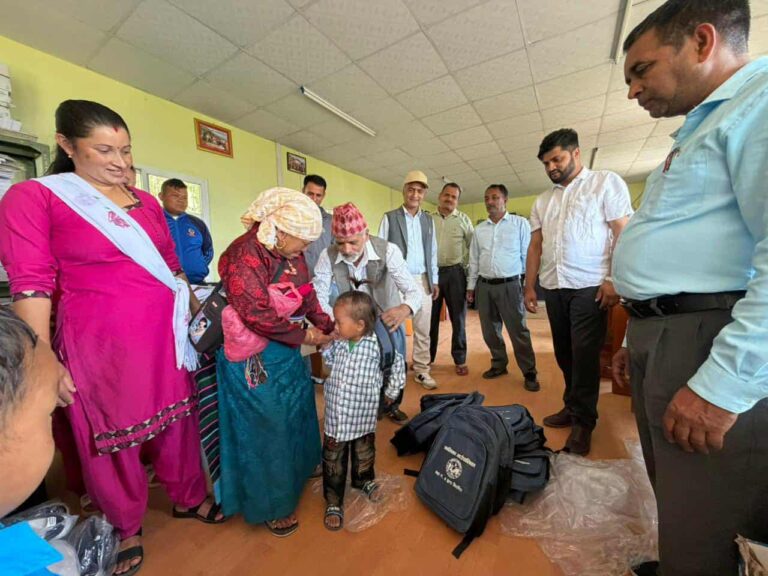 रसुवा को कालिका गाउँ पालिका वडा नम्बर ५ को वडा कार्यालय ले जिवजिवेमा रहेको निलकण्ठ नमुना माध्यमिक विधालयमा अध्ययनरत १ सय ५ जना विद्यार्थीहरूलाई जुत्ता, मोजा, झोला, पानीको बोतल, कपीलगायत शैक्षिक सामग्रीहरू वितरण गरिएको छ ।