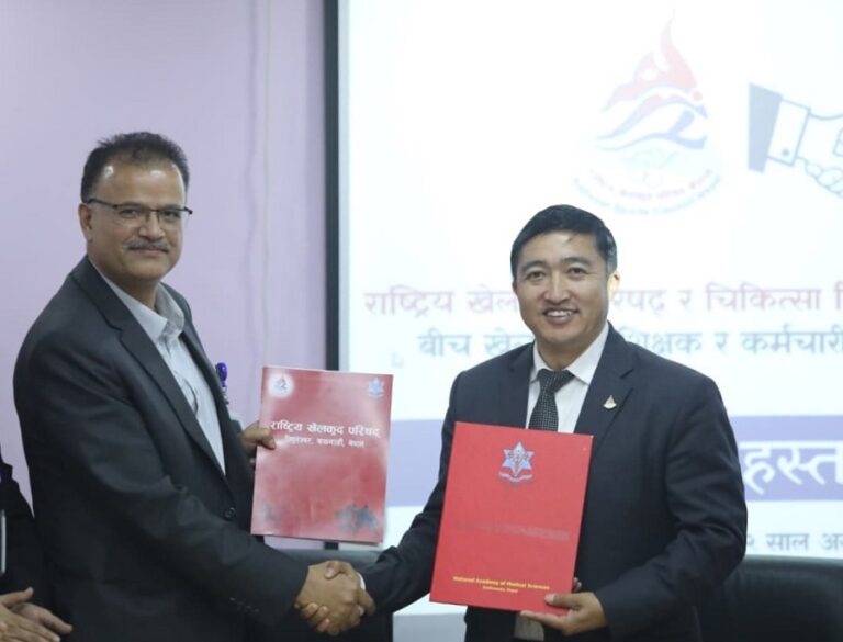 राष्ट्रिय खेलकुद परिषद् (राखेप) र नाम्सबीच खेलाडी र प्रशिक्षकलाई विशेष सेवा प्रदान गर्ने उद्देश्यले सहकार्य भएको छ । राखेपमा बिहीबार एक कार्यक्रमकाबीच राखेप र नाम्सले राष्ट्रिय तथा अन्तर्राष्ट्रिय खेलाडी, प्रशिक्षकहरूलाई आवश्यकता अनुरूप विशेष सेवा दिन सम्झौता गरेका छन् ।