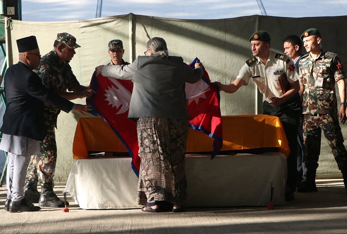 त्रिभुवन अन्तरास्ट्रिय विमानस्थल पुगेर प्रधानमन्त्री सुशीला कार्कीले विपीनको शवमा नेपालको राष्ट्रिय झण्डा ओढाएर श्रद्धाञ्जली दिएकी छन्। साथै प्रधानमन्त्री कार्कीले शोकसन्तप्त परिवारजनमा गहिरो समवेदना व्यक्त गरेकी छन्।