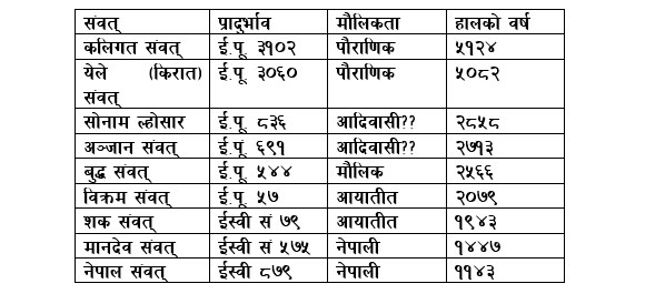 यसरी आइपरेका विपत्तिहरूको सामना गर्दै आर्थिक सामाजिक परिस्थितिको आमूल परिवर्तनलाई इतिहासमा स्थापित गर्न विभिन्न समयमा धार्मिक आस्था, व्यक्ति वा राजाका नाममा (आयातित ईस्वी, विक्रमजस्तै नेपालमा प्रचलित शक संवत् र मानदेव संवत् आदि)नयाँ संवत्हरूको थालनी भएको पाइन्छ । यसै सन्दर्भमा लिच्छवीकालको उत्तरार्धमा सन् ८७९ मा राष्ट्रकै नाममा स्थापित नेपाल संवत्को आफ्नै महत्व रहेको छ ।