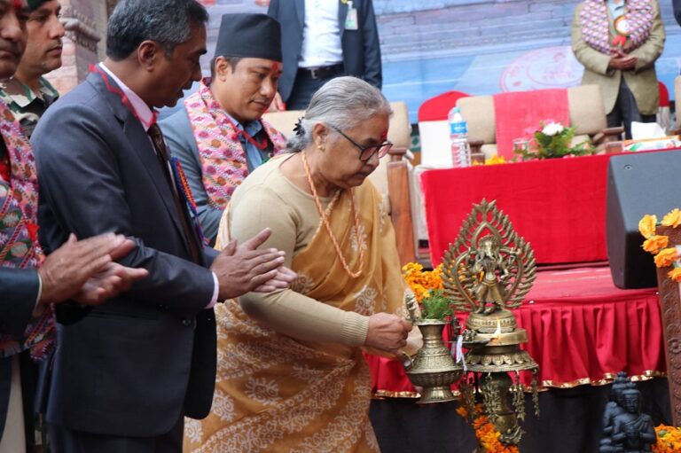 राष्ट्रिय विभूति शंखधर साख्वाः प्रतिष्ठान, मध्यपुर थिमिद्वारा आज आयोजित शंखधर साख्वाःको प्रतिमामा माल्यार्पण तथा सम्मान समारोहमा बोल्दै उनले सरकारी कागजातमा नेपाल संवत् समेत उल्लेख गर्ने निर्णयले सरकार यस सम्वतको संवर्धन, प्रवर्धन र व्यावहारिक रुपमा लागू गर्न तत्पर रहेको स्पष्ट रहेको बताइन् ।