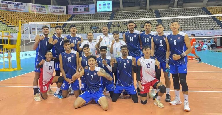 ढाकास्थित शहिद सुह्रवर्दी इन्डोर स्टेडियममा मंगलबार पाँचौ स्थानको लागि भएको प्लेअफ खेलमा नेपालले माल्दिभ्सलाई ३–१ को सेटमा हराएको हो । योसँगैं ६ राष्ट्र सम्मिलित प्रतियोगितामा नेपालले पाँचौं स्थान हासिल ग¥यो ।