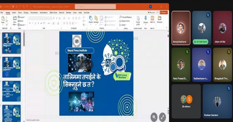 भर्चुअल माध्यमबाट सञ्चालन गरिएको तालिममा देशभरका ४३ भन्दा बढी पत्रकारको सहभागिता रहेको छ। प्रशिक्षक भट्टराईका अनुसार तालिममा एआइको प्रयोग, अनुवाद, समाचार सम्पादन, भ्वाइस टु टेक्स्ट, टेक्स्ट टु फोटो लगायतका विषयमा केन्द्रित प्रशिक्षण प्रदान गरिनेछ। उनले तालिममा व्यावहारिक पक्षलाई प्राथमिकता दिइए पनि सैद्धान्तिक ज्ञान पनि समेटिने बताए।