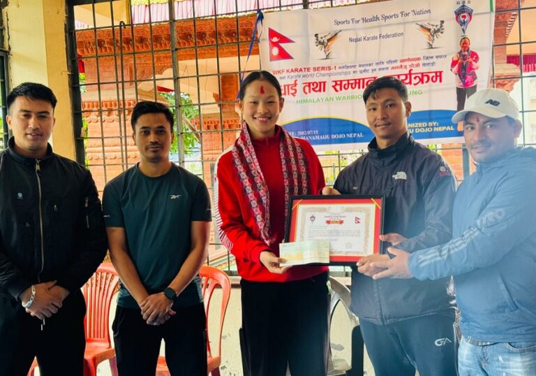 नेपाली राष्ट्रिय कराँते खेलाडी एरिका गुरुङ शनिबार सम्मानित भएकी छिन् । क्यानाडामा बासोबास गर्दै आएका मनमैजु डोजोका प्रमुख प्रशिक्षक निरज महर्जनले एरिकालाई सम्मान गरेका हुन् ।