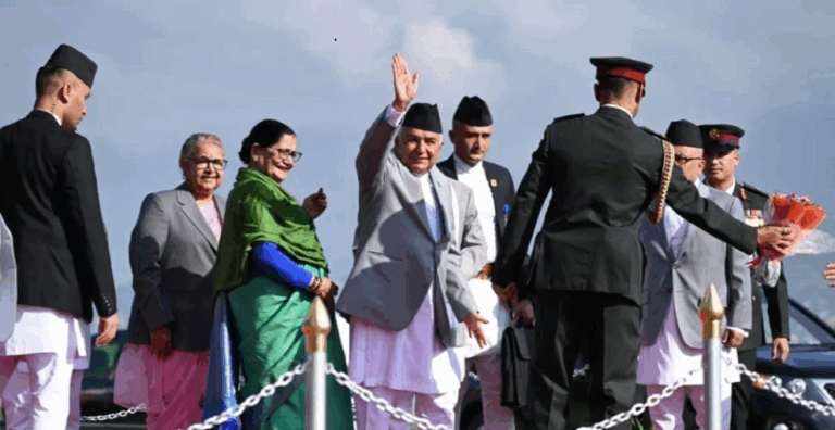 उनलाई विमानस्थलमा उपराष्ट्रपति रामसहायप्रसाद यादव, अन्तरिम सरकारका प्रधानमन्त्री सुशीला कार्कीलगायत संवैधानिक निकायका प्रमुख र उच्चपदस्थ कर्मचारीले बिदमाई गरे ।