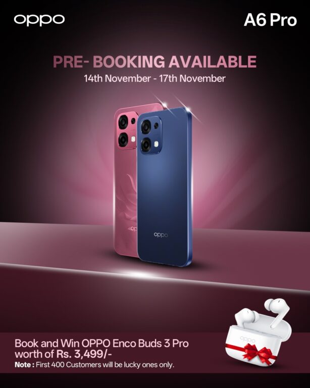 यो प्रि–बुकिङ अवधिमा ‘ओपो ए६ प्रो’ खरिद गर्ने पहिलो ४०० जना भाग्यशाली ग्राहकले रु. ३,४९९ मूल्यको ‘ओपो एन्को बड्स ३ प्रो’ निःशुल्क जित्ने मौका पाउनेछन् ।