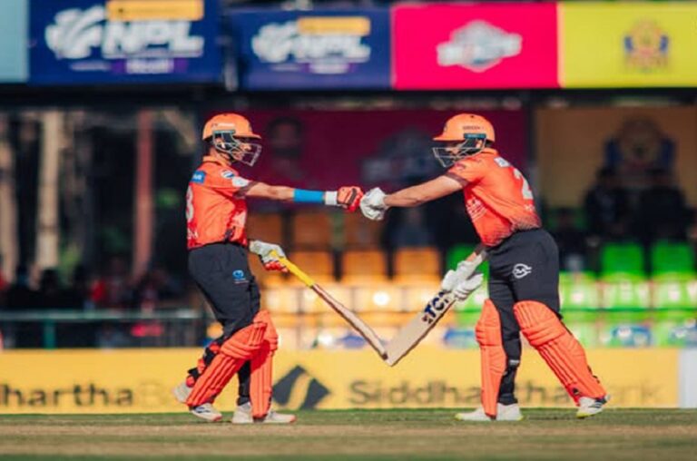 चौथो ओभरको पहिलो बलमा डेविड मलान र यही ओभरको पाँचौ बलमा ब्याटर देव खनाल आउट भएपछि चितवनको ब्याटिङ दबाबमा गएको थियो । तथापि ओपनर दीपक बोहोराले ९ ओभरको दोस्रो बलसम्म ओपनर दीपक खड्काले ब्याटिङ सम्हालेका थिए । खड्का ३६ बलमा ६ चौका १ छक्काको सहयोगमा ४२ रन जोडेर आउट भएका हुन्।