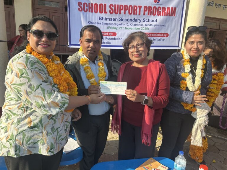 जस्ट सोसाइटी इनिसियटिभ नेपाल (जुसिन) ले अष्ट्रेलियाको दि अम्ब्रेला फाउण्डेसन अष्ट्रेलियाको आर्थिक सहयोगमा सिन्धुपाल्चोकको सांगाचोकगढी नगरपालिका-१०, खत्रीथोकस्थित भिमसेन माध्यमिक विद्यालयका १०२ विद्यार्थीहरूलाई विद्यालयको ट्रयाकसुट, टोपी, मोजा र शैक्षिक सामग्री वितरण गरेको छ।