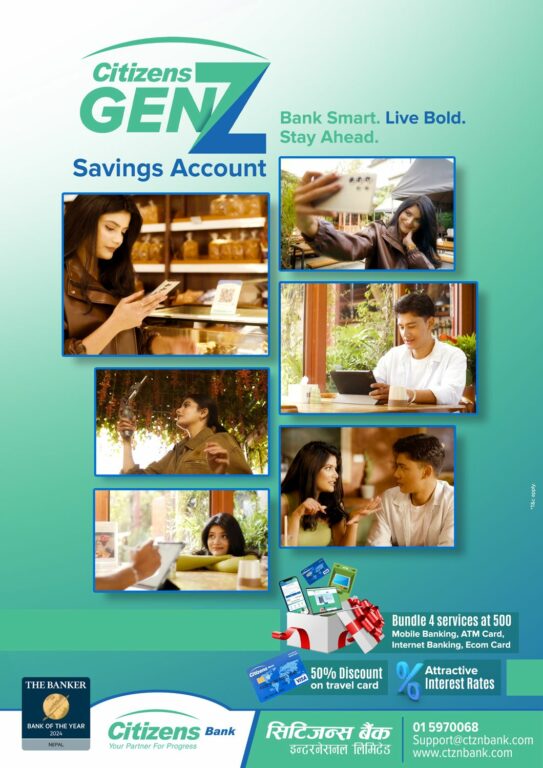 सिटिजन्स बैंक इन्टरनेसनल लिमिटेडले आफ्नाग्राहकलाई उत्कृष्ट सेवा सुविधा उपलब्ध गराउने क्रममा नवयुवा लक्षित बचत खाता“सिटिजन्स जेन–जी सेभिङ्ग अकाउन्ट”संचालनमा ल्याएको छ ।