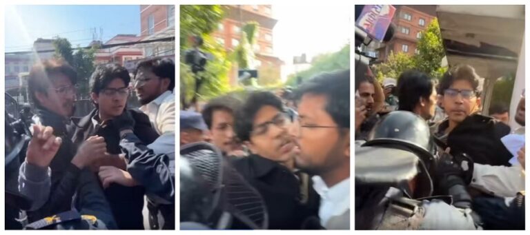 मंगलबार दिउँसो सिंहदरबार गेटअगाडि निषेधित क्षेत्रमै भीडभाड र होहल्ला गरिएको भन्दै जेनजी नेता मिराज ढुंगानाको नेतृत्वमा रहेको समूहलाई प्रहरीले हटाएको छ।