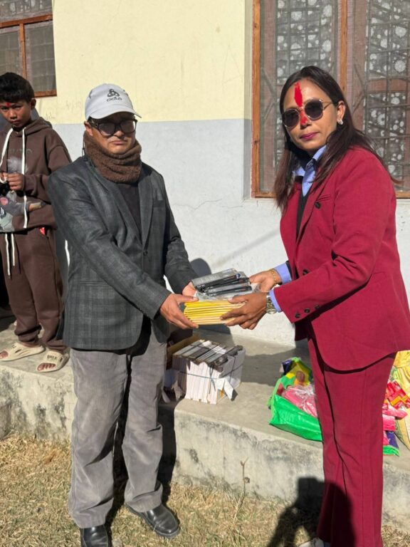 चिसोको समयमा न्यानो कपडा लगाएतका शैक्षिक खाद्यान्न सामग्री पाएपछि बालबालिका खुसी हुदै प्रअ खत्रीलाइ टिका लगाएर जन्मदिन मनाएका थिए ।