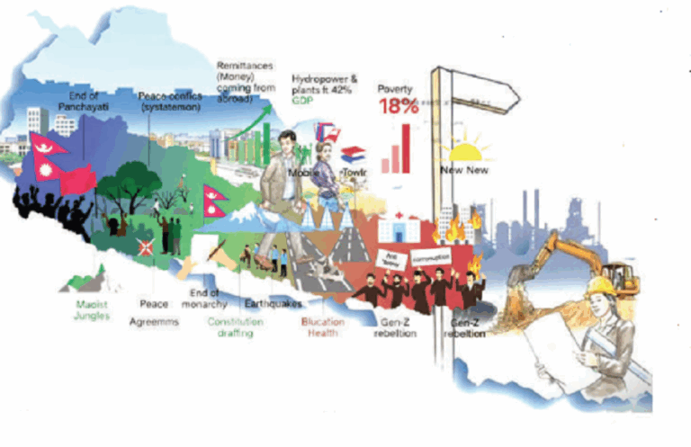वि.सं. २०४६ देखि २०८२ सम्मको अर्थराजनीतिक यात्रालाई विश्लेषण गर्दा नेपालले रूपान्तरणका महत्वपूर्ण चरणहरू—प्रजातन्त्र, द्वन्द्व, गणतन्त्र, संविधान निर्माण र संघीयताको अनुभव गरेको छ । यी उपलब्धिहरू ऐतिहासिक भए पनि समग्र परिवर्तनले जनजीवनमा अपेक्षित सुधार ल्याउन सकेको छैन । तर, केही नभएको पनि होइन । राजनीतिक नेतृत्वको अस्थिरता, दलभित्रको गुटबन्दी, नीति निरन्तरताको अभाव, कमजोर शासकीय क्षमता र दीर्घकालीन आर्थिक दृष्टिकोणको कमीले विकास प्रक्रियालाई बारम्बार अवरुद्ध गरेको छ ।