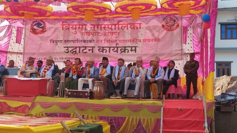 त्रियुगा नगरपालिकाको सुविधा सम्पन्न प्रशासकीय भवन निर्माण कार्य सम्पन्न भई सोमबार नगर प्रमुख वसन्त कुमार बूनेतले उद्घाटन गरेका छन् । नगरपालिकाको वडा १० स्थित वासबारीमा अपाङमैत्री र वालवालिका मैत्री नगरपालिकाको नयाँ प्रशासनिक भवनको निर्माण कम्पनीले समयावधिमा सम्पन्न गरेर नगरपालिकालाई हस्तान्तरण गरेको हो ।