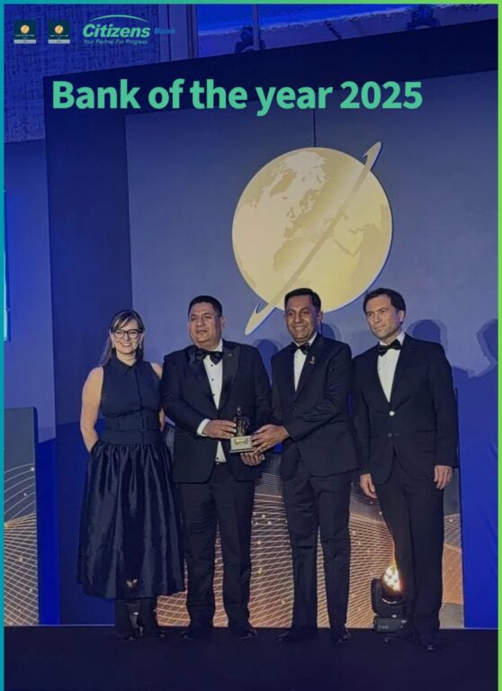 सिटिजन्स बैंक इन्टरनेसनल लिमिटेडले विश्वकै प्रतिष्ठित ‘बैंक अफ द ईयर २०२५’ अवार्ड प्राप्त गरेको छ। लण्डनमा द फाइनान्सियल टाईम्सद्वारा डिसेम्बर ३ मा आयोजित समारोहमा बैंकका अध्यक्ष प्रवल जङ्ग पाण्डे र प्रमुख कार्यकारी अधिकृत गणेश राज पोखरेलले अवार्ड ग्रहण गरे। यसअघि २०२४ मा पनि सोही अवार्ड जितेको बैंक लगातार दोस्रो वर्षसम्म सम्मानित भएको हो। समारोहमा १२५ भन्दा बढी देशका बैंकका प्रतिनिधिहरूको सहभागिता थियो।