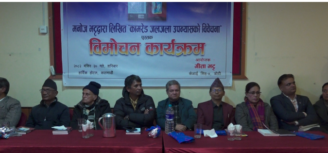 ‘कमरेड जलजला उपन्यासको विवेचना’ नामक पुस्तकको शनिबार काठमाडौंमा आयोजित कार्यक्रममा वामपन्थी नेता मोहनविक्रम सिंहले विमोचन गरेका छन्। समारोहलाई सम्बोधन गर्दै सिंहले जलजला उपन्यासले कर्म गर्नुपर्छ तर व्यक्तिगत फलको आश गर्नु हुँदैन भन्ने सन्देश दिएको बताए।