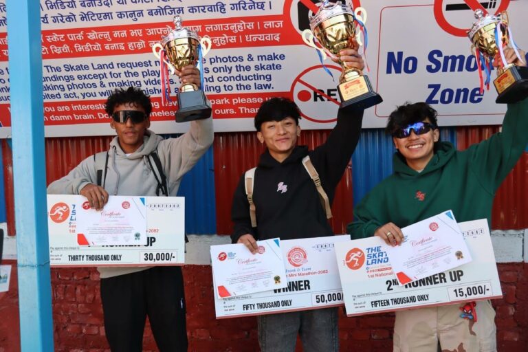 नेपालमै पहिलो पटक आयोजना भएको सो प्रतियोगितामा महिला पुरुष गरि करिब २०० जना स्वदेशी तथा बिदेशी खेलाडी हरुले सहभागिता जनाएका थिए, यो खेल काठमाडौंको कागेश्वरी मनहरा नगरपालिका सुन्दरीजल, आलापोट चोकदेखि गोकर्णेश्वर नगरपालिकाको तालिन्चोकस्थित द स्केटल्याण्ड स्केटपार्कसम्म करिब ५ किलोमिटर बराबरको दुरीमा खेलाइएको थियो, सो प्रतियोगिताको महिला तर्फ निमिशा पाख्रिन प्रथम, मोनिका मगर दित्तीय र सिवानी रेग्मी तृतीय भए, र पुरुष तर्फ साम्देन ग्याल्बो शेर्पा प्रथम, अनिश गुरुङ दित्तीय र सफल थापा तृतीय भएको प्रमुख प्रशिक्षक दिलिपराज बराल ले बताएका छन् ।