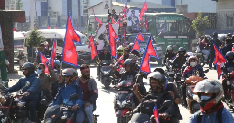 राष्ट्रिय प्रजातन्त्र पार्टी (राप्रपा)ले मंगलबार काठमाडौंमा प्रदर्शन गरेको छ। राजा, राजनीतिक दल र ‘जेनजी’बीच नवीन समझदारीका निम्ति दबाब दिने उद्देश्यले राप्रपाका नेता–कार्यकर्ताले रत्नपार्क क्षेत्रमा प्रदर्शन गरेका हुन् ।