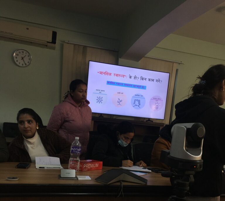 विश्व स्वास्थ्य सङ्गठन (डब्लुएचओ) नेपालका मनोचिकित्सक डा. केदार मरहट्ठाले कार्यक्रममा मानसिक स्वास्थ्यसम्बन्धी प्रस्तुति दिँदै समाजमा यसको बारेमा गम्भीर रूपमा ध्यान दिनुपर्ने आवश्यकता औंल्याए । उनले मानसिक रूपमा स्वस्थ हुनु भनेको “दैनिक जीवनमा आउने चुनौती तथा दबाबलाई सामना गर्ने क्षमता” हो भन्दै, यो क्षमता घटेमा व्यक्तिहरूलाई विभिन्न प्रकारका मानसिक समस्या देखिन सक्ने बताए । सोही अवसरमा उनले मानसिक समस्या भएका बिरामीलाई चिकित्सकले पनि अपहेलना गर्ने र समाजले पनि अपहेलना गर्ने गरेको बताए ।