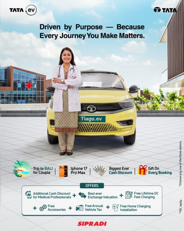टाटा मोटर्स नेपालका लागि एकमात्र अधिकृत वितरक सिप्रदी ट्रेडिङ प्रा.लि.ले समाजका लागि निरन्तर सेवा गरिरहेका मेडिकल समुदायप्रति सम्मान व्यक्त गर्दै टियागो.इभीका लागि विशेष योजना सार्वजनिक गरेको छ ।