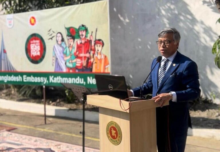 बंगलादेशको राष्ट्रिय विजय दिवस २०२५ को अवसरमा काठमाडौंस्थित बंगलादेश दूतावासले आफ्नै परिसरमा भव्य तथा उत्साहपूर्ण कार्यक्रमको आयोजना गरेको छ। गरिमामय वातावरणमा सम्पन्न कार्यक्रममा विजय दिवस श्रद्धा, सम्मान र उल्लासका साथ मनाइएको थियो।