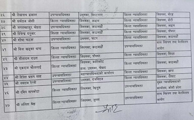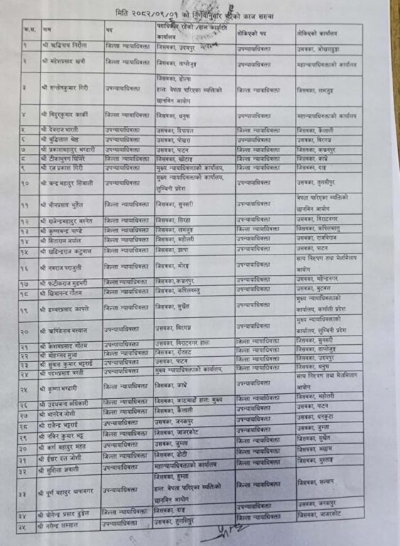 स्वयं मन्त्रीलाई नै पत्तो नदिई न्याय सेवा आयोगमा छलफल समेत नगराई कर्मचारीहरुले ब्यक्तिगत लाभका आधारमा जिल्ला न्यायाधिबक्ताहरुलाई ६ महिना नै नपुगी काज सरुवा गरिदिएको छ । एक साता अघि बसेको न्याय सेवा आयोगमा छलफल नगराएका ४७ जना जिल्ला न्यायाधिबक्ता तथा उपन्यायाधिबक्ताहरुको सरुवा गरिएको हो । २०८२ पौष १ गते को निर्णय अनुसार ४७ जनाको काज सरुवा भएको हो । काज सरुवाका सन्दर्भमा कानुन मन्त्री, महान्याधिवक्ताको कार्यालय तथा महान्याधिवक्तालाई समेत जानकारी छैन । नायव महान्याधिवक्ता संजीवराज रेग्गी र प्रशासन तर्फका सह न्यायाधिवक्ता अच्युमणी नेउपानेले न्याय सेवा आयोगमा छलफल नगरेका तर आफू निकट र व्यक्ति अनुसारका सरुवाका लागि काज गर्ने निर्णय सार्वजनिक गरेका हुन् ।