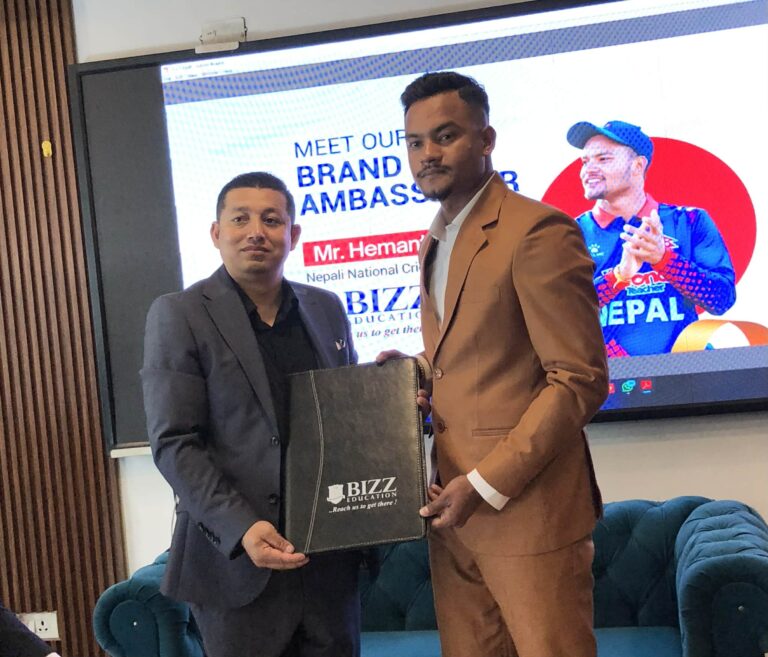 नेपाली क्रिकेटको नयाँ पुस्ताका चम्किला तारा, सुदूरपश्चिमका उदीयमान क्रिकेट स्टार हेमन्त धामी अन्तर्राष्ट्रिय शिक्षा परामर्श संस्था बिज एजुकेशनको आधिकारिक क्रिकेट ब्रान्ड एम्बेसडर बनेका छन्। आज गुट्ठाघरमा आयोजित विशेष कार्यक्रममा बिज एजुकेशनका संस्थापक तथा प्रबन्ध निर्देशक हरि कार्की र क्रिकेटर धामीले तीन वर्षको सम्झौता हस्ताक्षर गरेका छन्, जसलाई प्रत्येक वर्ष आपसी सहमतिमा नवीकरण गर्न सकिने व्यवस्था छ।