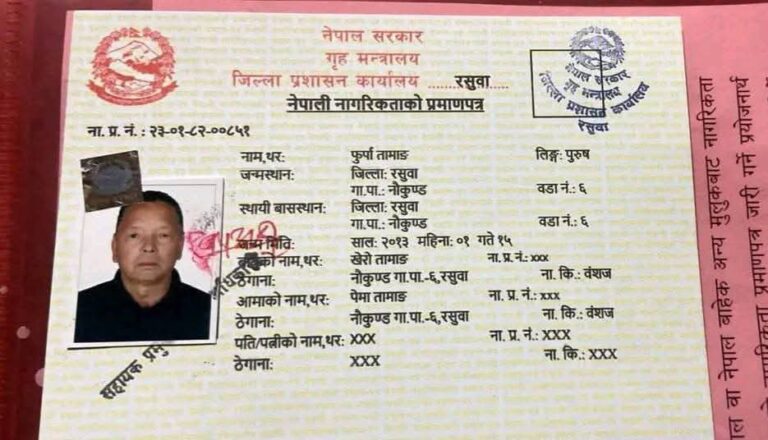 जिल्ला प्रशासन कार्यालय रसुवा का सुचना अधिकारी एवम साहायक प्रमुख जिल्ला अधिकारी द्रुव प्रसाद अधिकारी का अनुसार सम्पुर्ण कागजपत्र देखि प्रक्रिया पूरा गर्न साहायक प्रजिअ लगाएत स्थानिय तह,वडा कार्यालय,स्थानिय सराेकार वाला हरू लगाएत प्रशासन कार्यालयकाे सहजिकरणमा उहाँ काे नागरिकता वनेकाे हाे ।