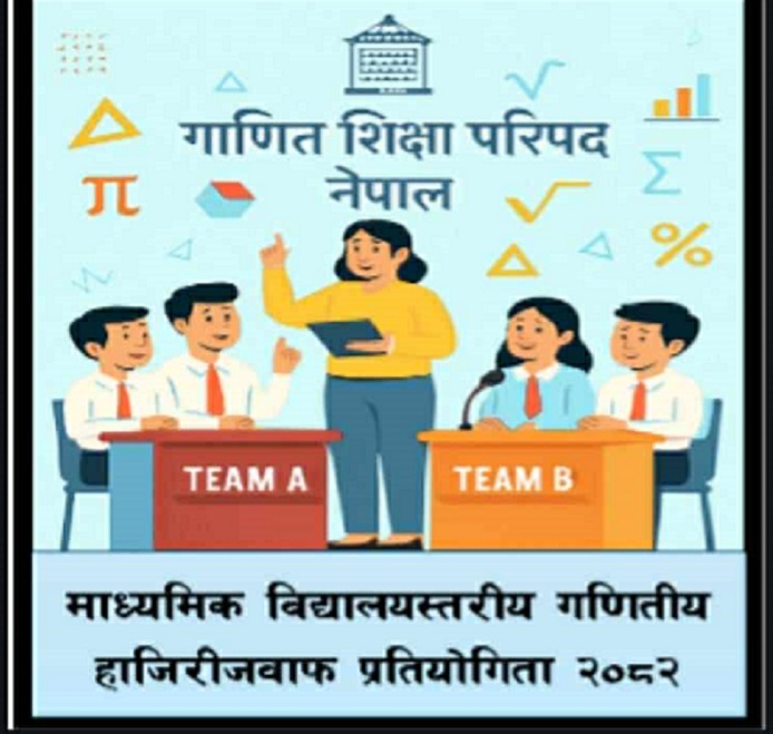 गणित शिक्षा परिषद्ले राष्ट्रिय स्तरमा माध्यमिक विद्यालयस्तरीय गणितीय हाजिरी जवाफ प्रतियोगिता सञ्चालन गर्ने भएको छ ।