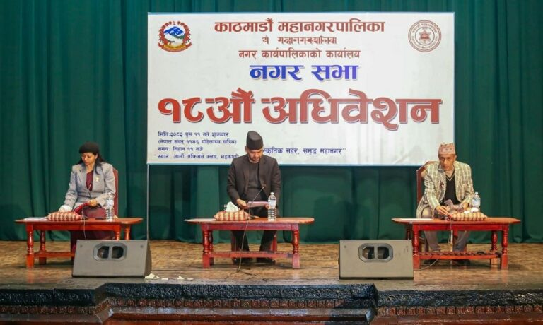 काठमाडौँ महानगरपालिकाको नगर सभा १८ औँ अधिवेशन सम्पन्न भएको छ। सभामा महानगरपालिकाका उपप्रमुख एवं बजेट तर्जुमा समितिका संयोजक सुनिता डंगोलले, काठमाडौँ महानगरपालिका विनियोजन ऐन, २०८२ मा पहिलो संशोधन विधेयक, २०८२ र महानगरपालिकाको चालु आर्थिक वर्षको कार्यक्रम तथा बजेटमा संशोधन प्रस्ताव पेश गरेकी थिइन् ।