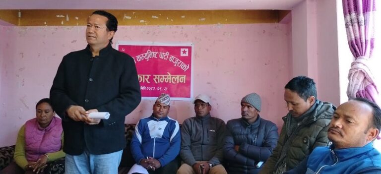 आगामी फागुन २१ गते हुने भनिएको प्रतिनिधि सभा सदस्यका लागि नेपाली कम्युनिस्ट पार्टी बाजुराले सुदूरपश्चिम प्रदेश पूर्व आर्थिक मामिला तथा भौतिकयोजना मन्त्री एवं नेपाली कम्युनिस्ट पार्टीका नेता प्रकाश बहादुर शाहलाई सर्बसम्मत सिफारिस गरेको छ । नेपाली कम्युनिस्ट पार्टी जिल्ला कमिटी बाजुराले शुक्रवार दिउँसो सदरमुकाम मार्तडीमा आयोजना गरेको पत्रकार सम्मेलन मार्फत उक्त कुराको जानकारी गराएको हो ।