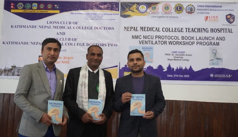नेपाल मेडिकल कलेज (एनएमसी) मा नवजात शिशुको सघन उपचार र आधुनिक मेकानिकल भेन्टिलेसन प्रविधि सम्बन्धी एक बृहत् ‘एड्भान्स्ड वर्कसप अन मेकानिकल भेन्टिलेसन इन नियोनेट्स’ सफलतापूर्वक सम्पन्न भएको छ। लायन्स क्लब अफ एनएमसी डक्टर्स, लायन्स क्लब अफ एनएमसी डक्टर्स टू र मिसन ब्रेन च्याप्टर – काठमाडौँ विश्वविद्यालयको संयुक्त आयोजनामा उक्त कार्यक्रम आयोजना गरिएको हो।
