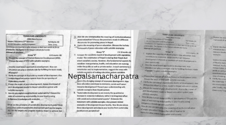 त्रिभुवन विश्वविद्यालय शिक्षाशास्त्र संकाय स्नातकोत्तर तह (एमएड) दोस्रो सेमेस्टरको शिक्षा तथा विकास विषयको ७ वटा प्रश्न हुबहु दोहोरिएको छ । गत वर्षको प्रश्नपत्र यो वर्षको प्रश्नसँग हुबहु दोहोरिँदा पनि शिक्षाशास्त्र संकायका डीन प्राडा वेदराज आचार्यले झुट बोल्नुभएको छ ।