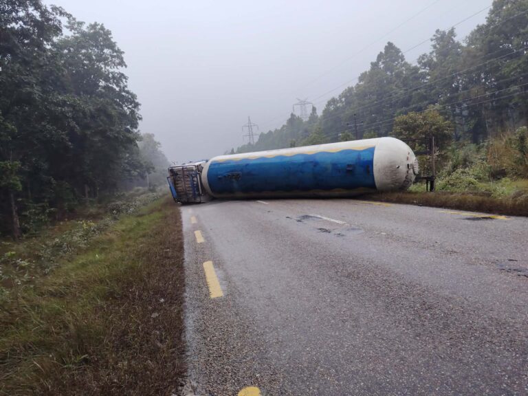 भारतको रक्सौलबाट एलपीजी ग्यास बोकेर धनुषाको महेन्द्रनगरतर्फ जाँदै गरेको युपी १७ ए टी २११४ नम्बरको ट्यांकर मङ्गलबार बिहान पल्टिदा यांकर चालक भारतको कदोरा, जिल्ला जयनगर थाना निवासी ३५ वर्षीय पवन यादव घाइते भएका छन् । घाइते चालकको चन्द्रनिगाहपुरस्थित सिभिल अस्पतालमा उपचार भइरहेको प्रहरीले जनाएको छ ।