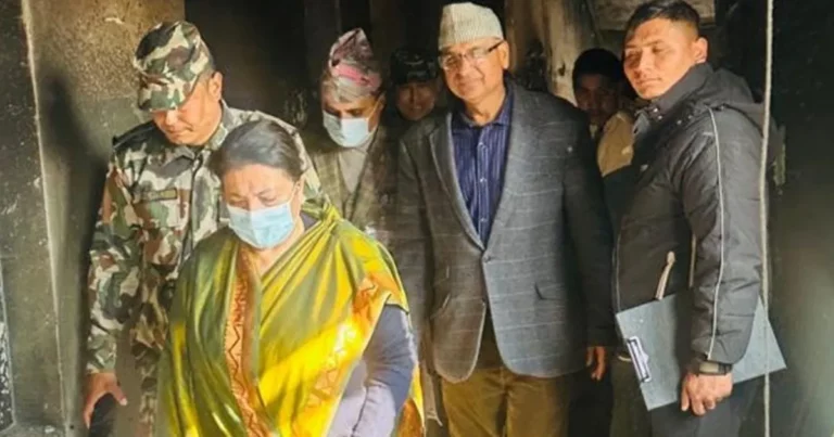 पूर्वराष्ट्रपति भण्डारीले शुक्रबार जेनजी आन्दाेलनका क्रममा आगलागीबाट अदालतमा भएको क्षतिको अवलोकन गरेकी हुन् । यसअघि संघीय संसद भवन र सिंहदरबारभित्र रहेका क्षतिग्रस्त मन्त्रालयकाे समेत अनुगमन गरेकी थिइन्।