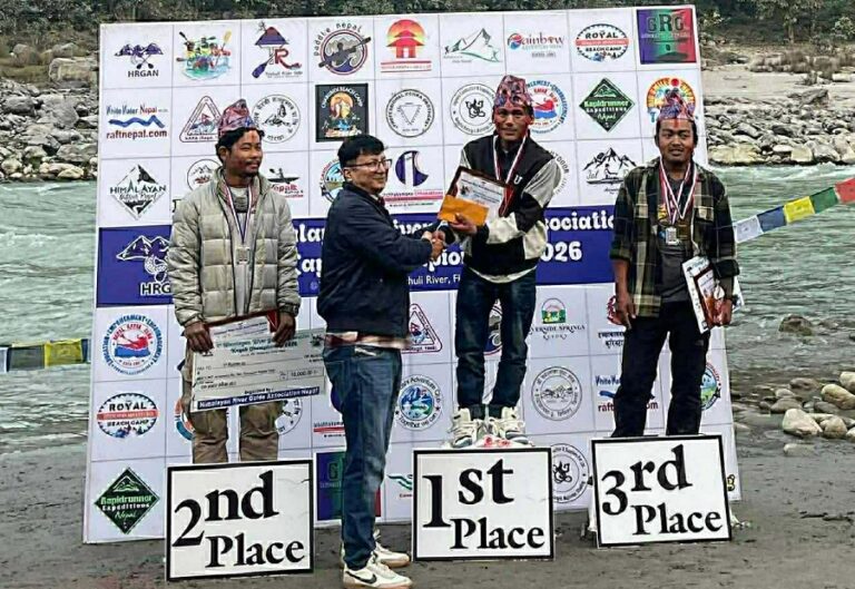 हिमालय रिभर गाइड संघका अध्यक्ष डोलबहादुर गुरुङको अध्यक्षतामा भएको कार्यक्रममा पदक विजेता खेलाडीलाई नेपाल ¥याफ्टिङ एन्ड क्यानोइङ संघका अध्यक्ष एवं नेपाल ओलम्पिक कमिटीका महासचिव राजीव श्रेष्ठले पुरस्कार वितरण गरेका थिए।
