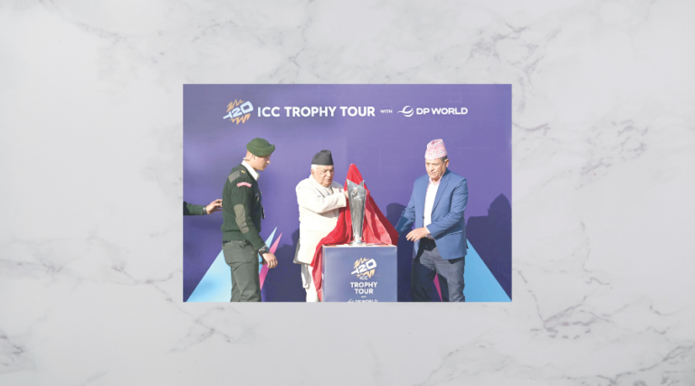 अन्तर्राष्ट्रिय क्रिकेट परिषद् (आईसीसी) अन्तर्गत अर्को महिनामा हुने टी–ट्वान्टी विश्वकप ट्रफी नेपाल ल्याइएको छ । सो टी–ट्वान्टी विश्वकप ट्रफी राष्ट्रपति निवासमा सोमबार सार्वजनिक गरियो । राष्ट्रपति रामचन्द्र पौडेलले टी–ट्वान्टी विश्वकपको ट्रफी अनावरण गर्नुभयो ।