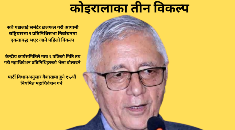 नेपाली कांग्रेसका वरिष्ठ नेता डा. शेखर कोइरालाले पार्टीभित्र नियमित वा विशेष महाधिवेशनलाई लिएर उत्पन्न विवाद समाधान गर्न तीन वैकल्पिक प्रस्ताव अघि सारेका छन्।