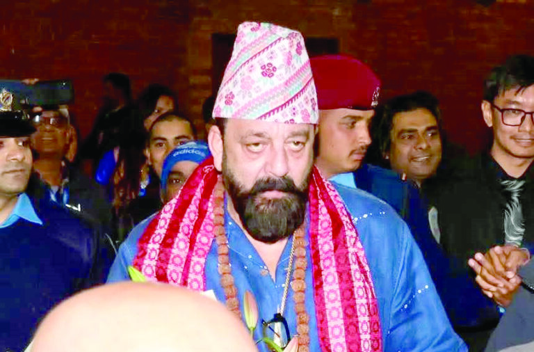 एक क्यासिनोको शुभारम्भका लागि बिहीबार राति काठमाडौं आइपुगेका बलिउडका मुन्ना भाइ सञ्जय दत्तलाई त्रिभुवन अन्तर्राष्ट्रिय विमानस्थलमा ढाका टोपी पहिराएर स्वागत गरिँदै।