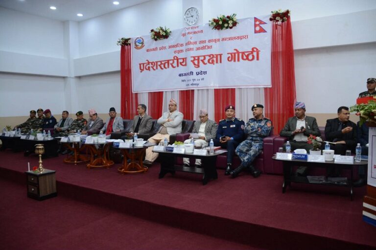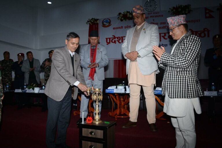 गृह मन्त्रालय र बागमती प्रदेश आन्तरिक मामिला तथा कानुन मन्त्रालयद्वारा संयुक्त रुपमा आयोजना भइरहेको प्रदेशस्तरीय सुरक्षा गोष्ठीमा बागमती प्रदेशका मुख्यमन्त्री ईन्द्र बहादुर बानियाँ प्रदेशका आन्तरिक मामिला मन्त्री लगायतको उपस्थिति रहेको छ।