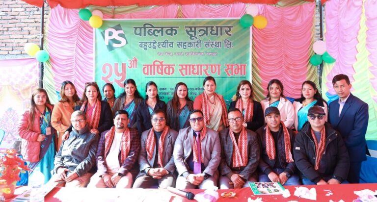 पब्लिक सूत्रधार बहुउद्देश्यीय सहकारी संस्था लिमिटेडको २५औँ वार्षिक साधारण सभा भक्तपुरको सूर्यविनायकस्थित सेवा केन्द्रमा भव्यताका साथ सम्पन्न भएको छ । संस्थाका अध्यक्ष विधान जोशीको अध्यक्षतामा भएको उक्त कार्यक्रममा संस्थाको आगामी कार्यदिशा र वर्तमान आर्थिक चुनौतीका विषयमा गहन छलफल गरिएको थियो ।