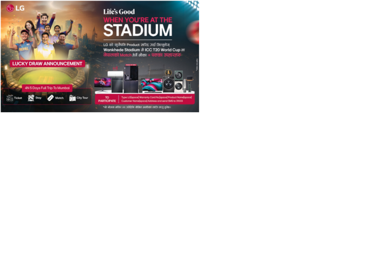 एलजी नेपालले मुम्बईस्थित वानखेड़े स्टेडियममा नेपाली टोलीको खेल प्रत्यक्ष अवलोकन गराउने टी–२० विश्वकप यात्राअन्तर्गतको दोस्रो चरणका विजेता घोषणा गरेको छ । विश्वस्तरीय अन्तर्राष्ट्रिय क्रिकेटको रोमाञ्चलाई एकसाथ जोड्ने उद्देश्यसहित एलजी नेपालले गत मंसिर २९ गतेदेखि उपभोक्तालाई लक्षित आकर्षक योजना सार्वजनिक गरेको थियो, जसको दोस्रो चरणका भाग्यशाली विजेता सार्वजनिक गरिएको हो ।