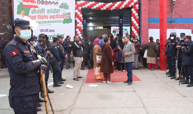 नेपाली कांग्रेसको विशेष महाधिवेशनबाट नयाँ नेतृत्व चयनका लागि कार्यतालिका सार्वजनिक भएसँगै भृकुटीमण्डप क्षेत्रमा सुरक्षा तैनाथी बढाइएको छ ।